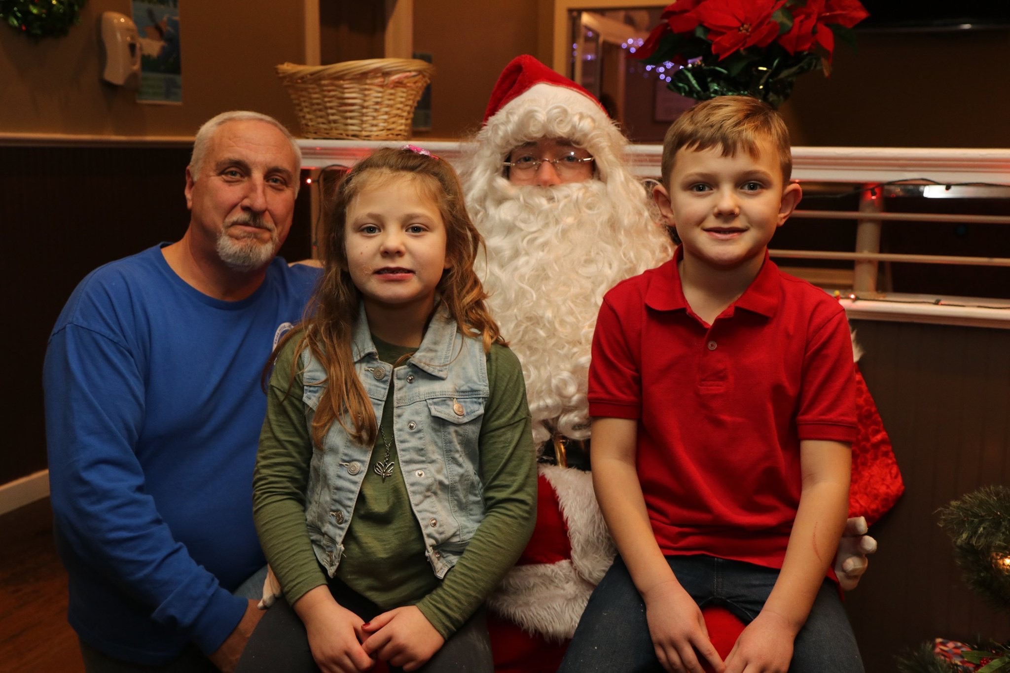Member Joe Haney, and his grandkids Cooper, and Olivia, visit with Santa at CSEA Night at Lights on the Lake