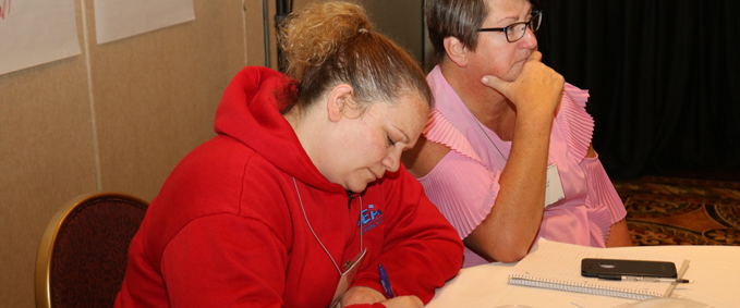 tammy-adm1-edit Local 834 Exec VP, Tammy Honeywell, works hard during a workshop at the Annual Delegates Meeting.